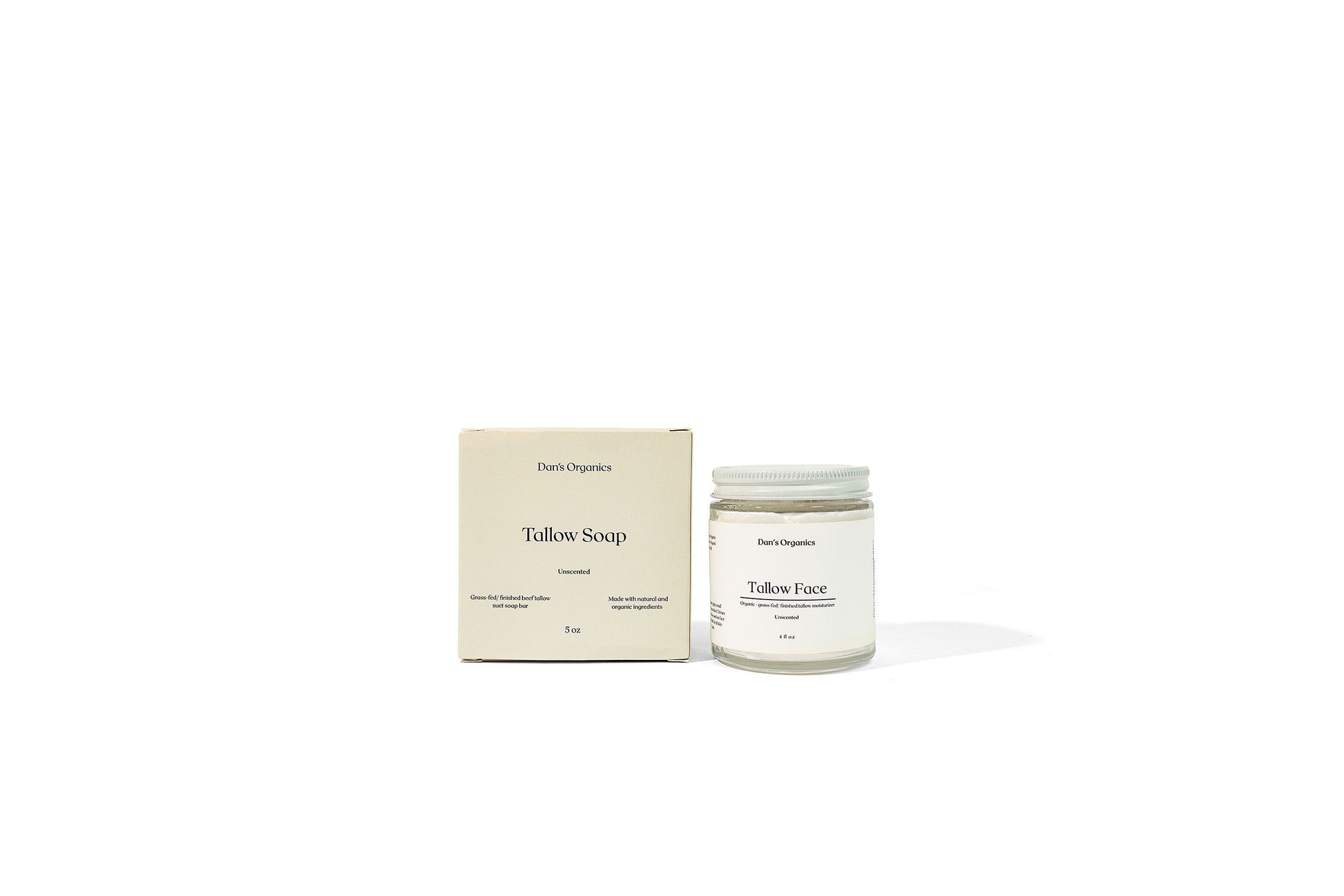 Tallow Face (Unscented) 4 oz – Handcrafted with 100% grass-fed and finished suet tallow, and organic jojoba oil, this nutrient-rich moisturizer deeply nourishes and supports the skin barrier. Gentle enough for sensitive skin, it helps soothe dryness, irritation, and redness while locking in long-lasting hydration.
